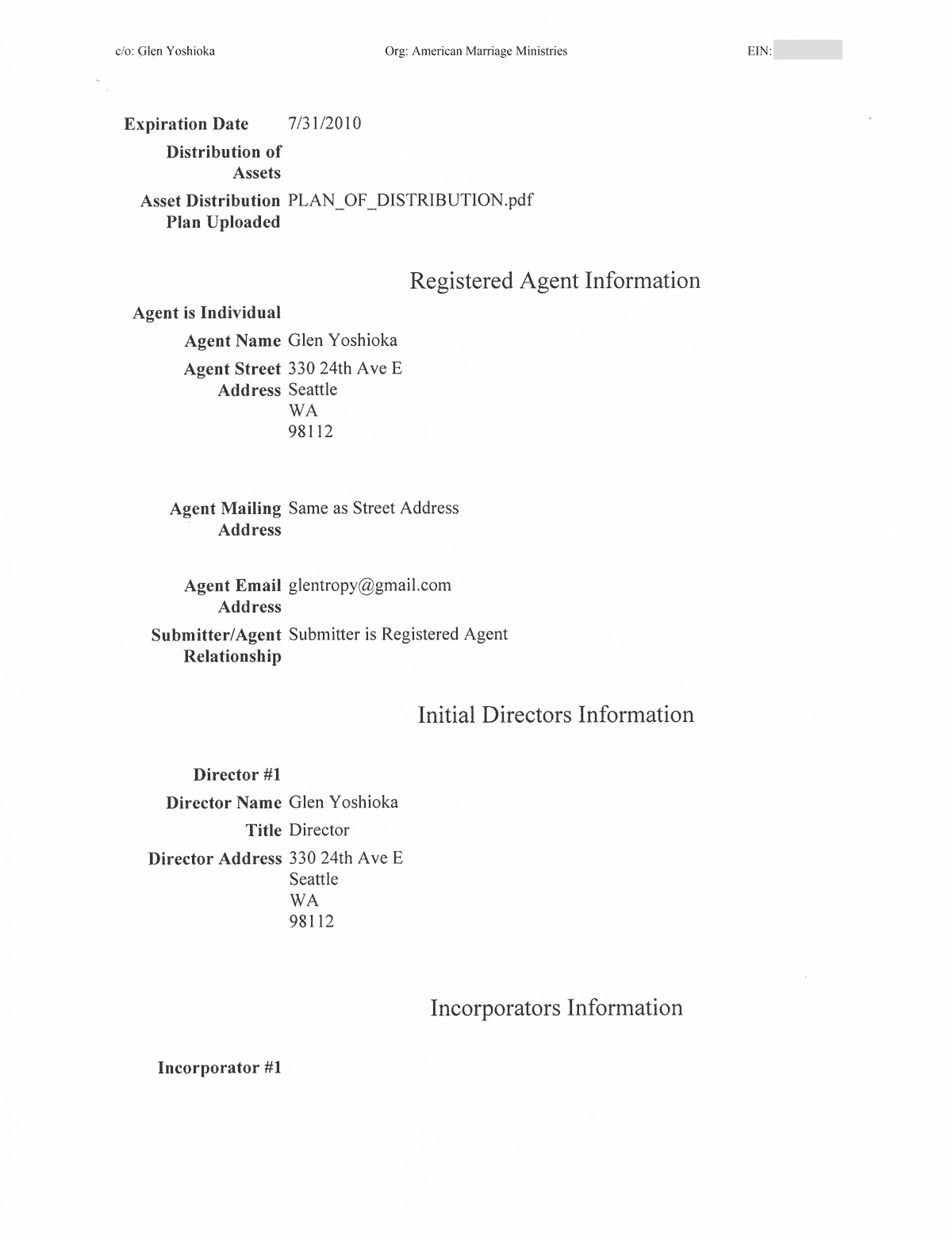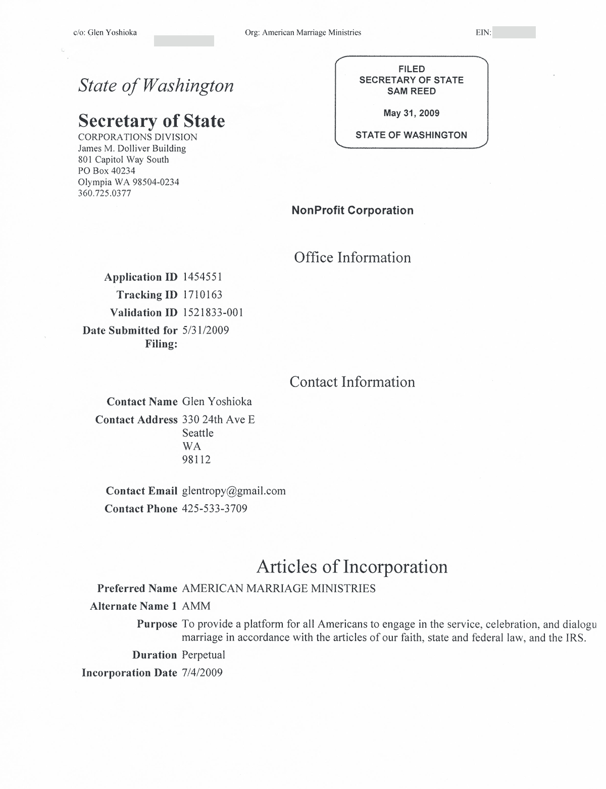 American Marriage Ministries was Incorporated on July 4th of 2009 in Washington State. The AMM Purpose is to provide a platform for all Americans to engage in the service, celebration, and dialogue of marriage.