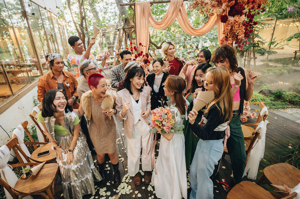 [Start of the Wedding Ceremony - The guests are seated followed by the entrance of the wedding party.]