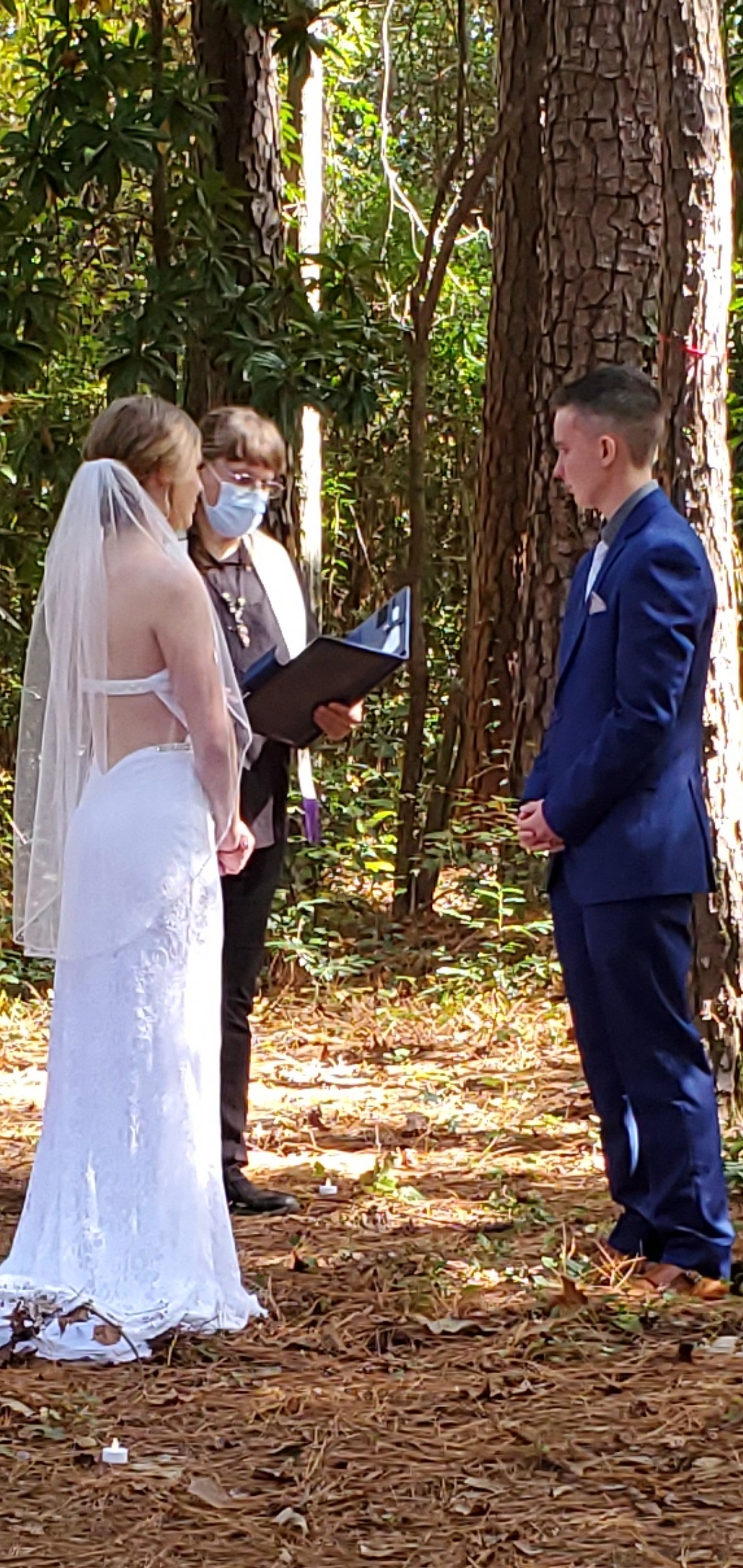 Officiated by Carolyn Buenger Mott at Mazerick Park in Fayetteville, North Carolina on October 23rd, 2020. Witnessed by Sally Weiland and Angela Baxter.