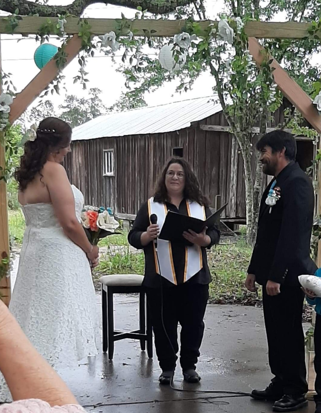 "This was my very first wedding to perform. I must say that even though the rain was trying to hang around, it did hold off. I was so honored to be able to marry one of my best friends to the man she had finally found again. It was very touching to be such an important role of their special day. I'm actually open to performing more weddings in the future. It was a wonderful experience that I will cherish forever."
