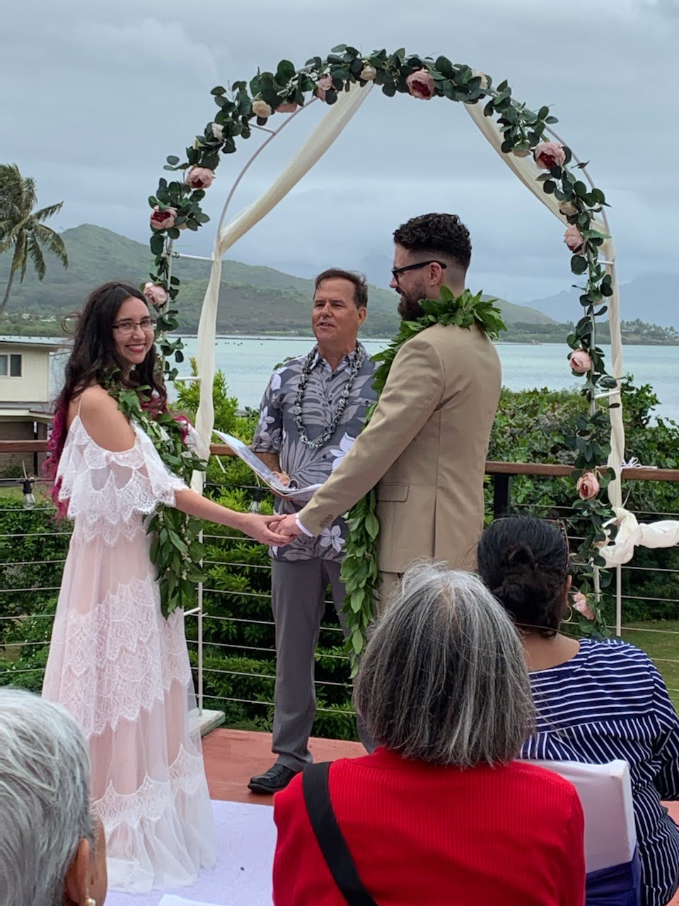 Officiated by Pete "Aloha" Tingstrom at Tingstrom Estate in Kaneohe, Hawaii on October 9th, 2021. Witnessed by Gina Tingstrom and Ginny Wright.