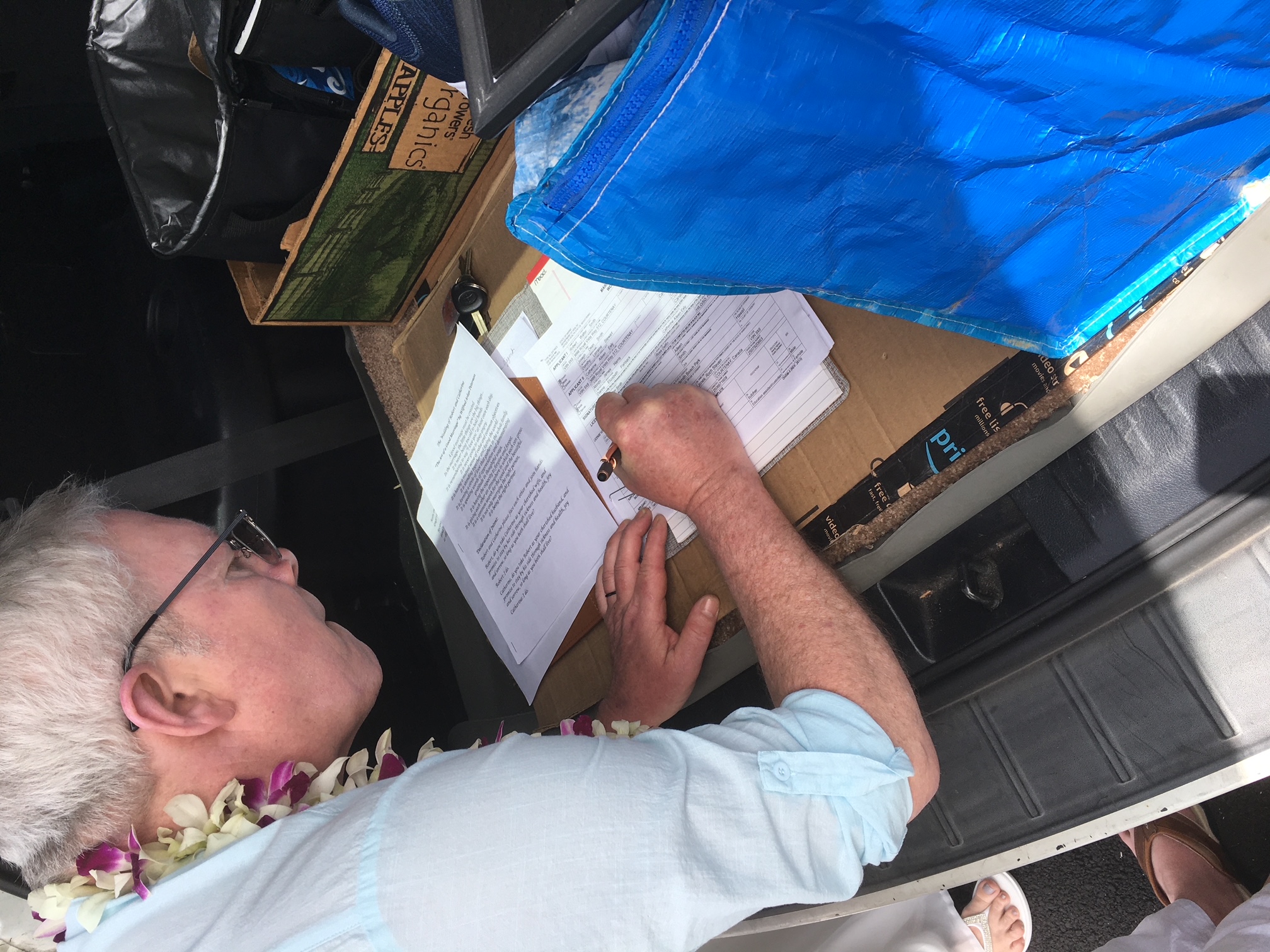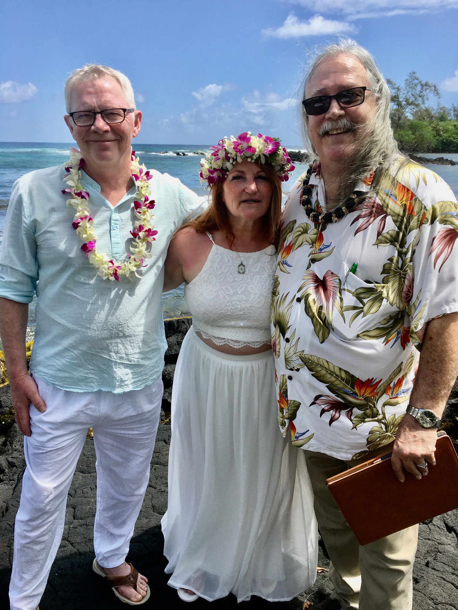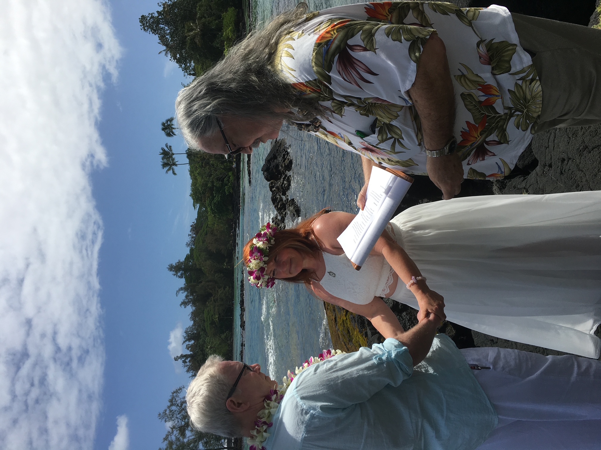 Robert and Catherine, by the power vested in me by the state of Hawaii, I am pleased to pronounce you Husband and Wife, sealed together today both in law and in love, before the Universe.