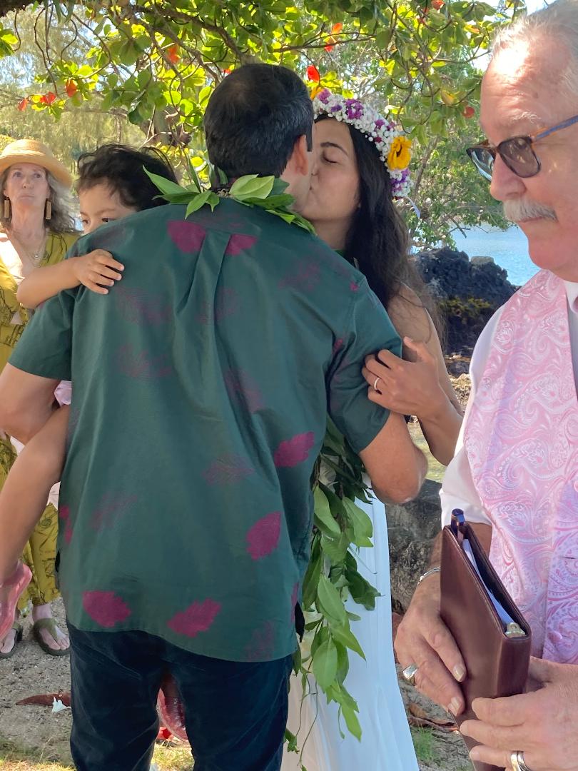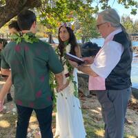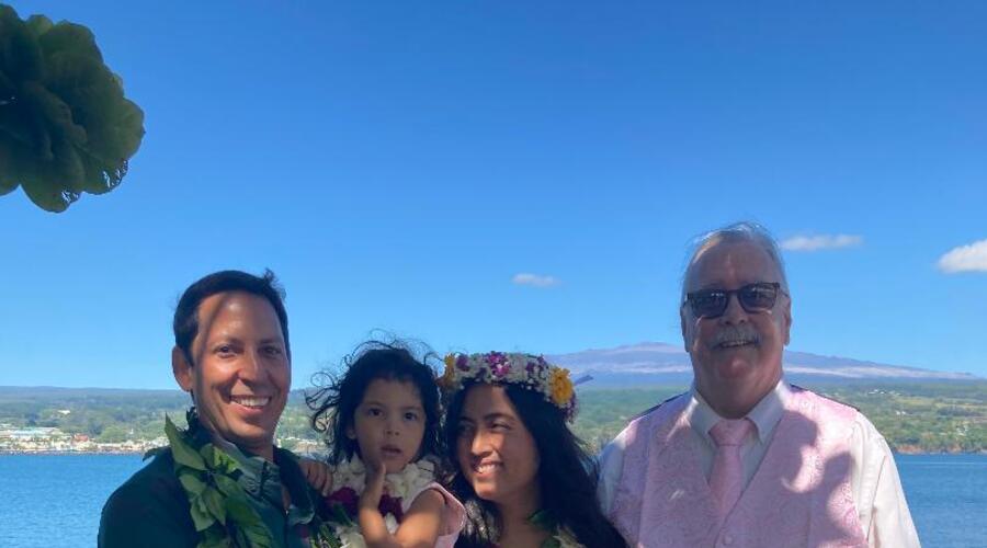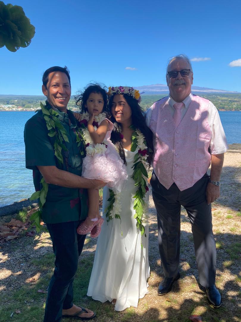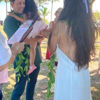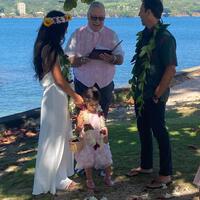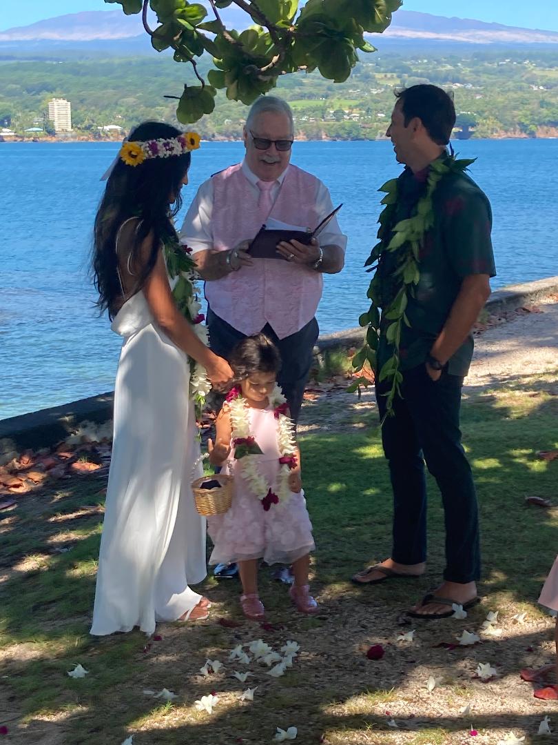 "Teresa and Sinclair and Sofia are a wonderful family. It was a joy to perform their ceremony in front of their families. It was a beautiful day on Coconut Island (Mokuola). We had some laughs and smiles and there were some happy tears."