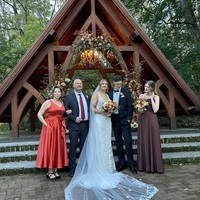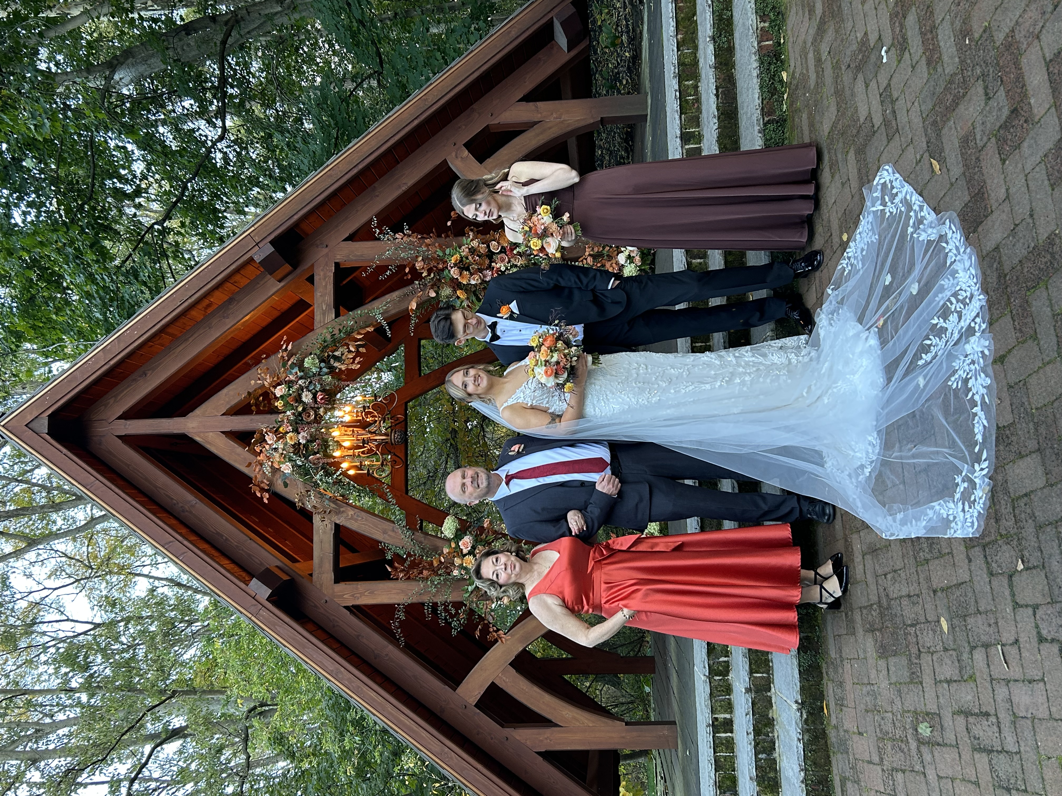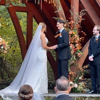 "Lauren and Connor met on a dating app as many love stories begin- but thanks to crossing paths at the height of Covid-the the first month and a half they communicated by text only. They never even heard each others voice. Their first date was a movie in Connor’s dorm room. At the end of the night Connor knew he wanted to kiss her goodnight- but did he dare during the “global pandemic “.So there he stood nervously - and just blurted out”Are we allowed to kiss now.” Turns out Lauren agreed and that first kiss - as awkward as it was / turned into a lifetime Romance. I am Connor’s Nan. When he asked me to officiate this most important day, I thought how can I, but then I realized how can I not do this. What an Honor. I live in Myrtle Beach, SC and Connor and Lauren in PA- can I even do this. But by finding American Ministries on line and all the help they provide I soon felt much more comfortable. We practiced together by phone answering each others questions and across the states we perfected the perfect ceremony. For the Invocation I welcomed Family,Friends and Loved ones. Shared a story of how they first met to break any tension and put smiles on everyone’s faces including their own. I did a Bible reading from 1 Corinthians 13 4-8 reminding everyone what the true meaning of Love is. It brought tears to many eyes. Declaration of Intent was next. Connor and Lauren- your love brought us all here today… Lauren and Connor prepared their own vows which had everyone in tears. Then they recited their traditional vows. Lauren wanted to go first Ring Exchange followed. I said” these rings symbolize your eternal Love. The circle has no beginning or end They represent a love that is meant to last forever with a promise of unity and completeness to each other.” After their ring exchange I shared a little wisdom list that l’ve gained about marriage - Most important- Keep God First in your Marriage and in your life/ And you will be able to Face Anything. May God Bless this Day and this Marriage. Next the Pronouncement- By the Power vested in me … I Pronounce you Husband and Wife. “ Connor you may kiss your Bride”. Congratulations Lauren and Connor. May I now Present to you all - for the first time- Mr. And Mrs. Redcay. “ Let’s hear it for Them”. It went Beautifully and I felt very comfortable especially being my very first ceremony and wanting it to be perfect for Connor and Lauren. I felt very honored- so happy I said Yes to my most precious Grandson."