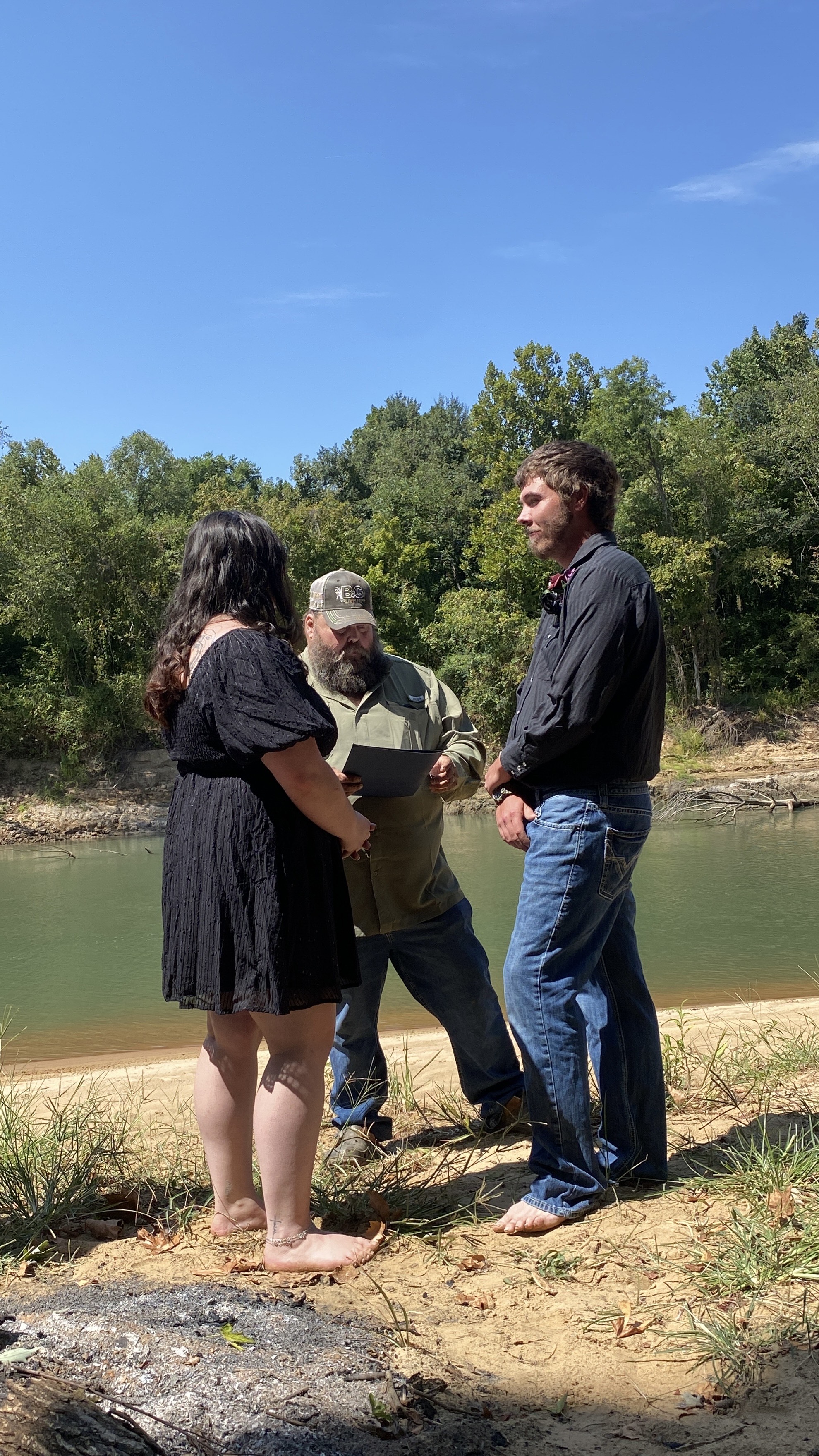 Officiated by Jason L King at Current River in Biggers, Arkansas on September 6th, 2025. Witnessed by Tonya Foster and Chris Foster.