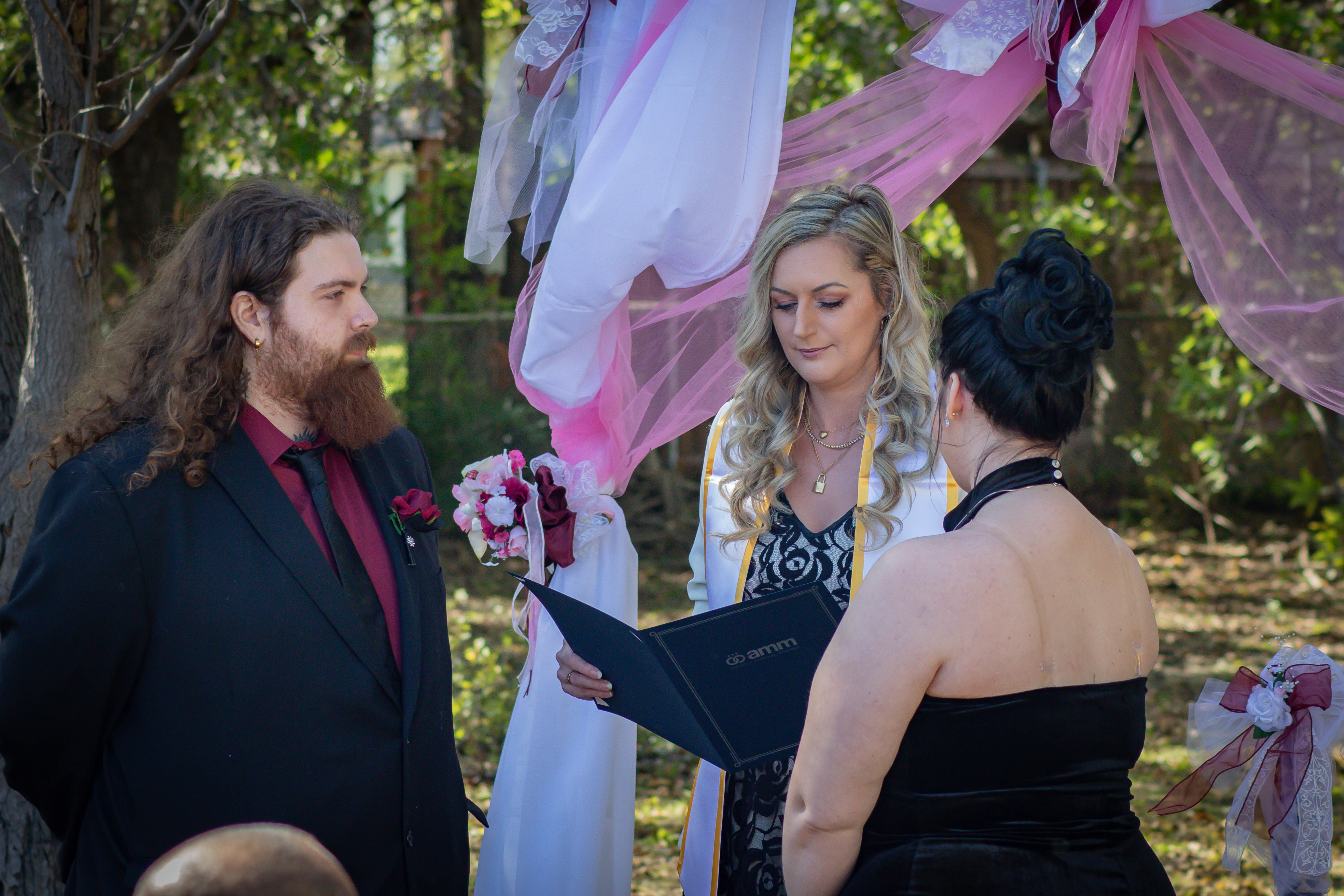 TO THE BRIDE: “Do you, Brianna Dawn Duty, take Slater Jonathan Abella, to be your lawfully wedded husband, to have and to hold from this day forward, for better, for worse, for richer, for poorer, in sickness and in health, to love and to cherish, as long as you both shall live?”