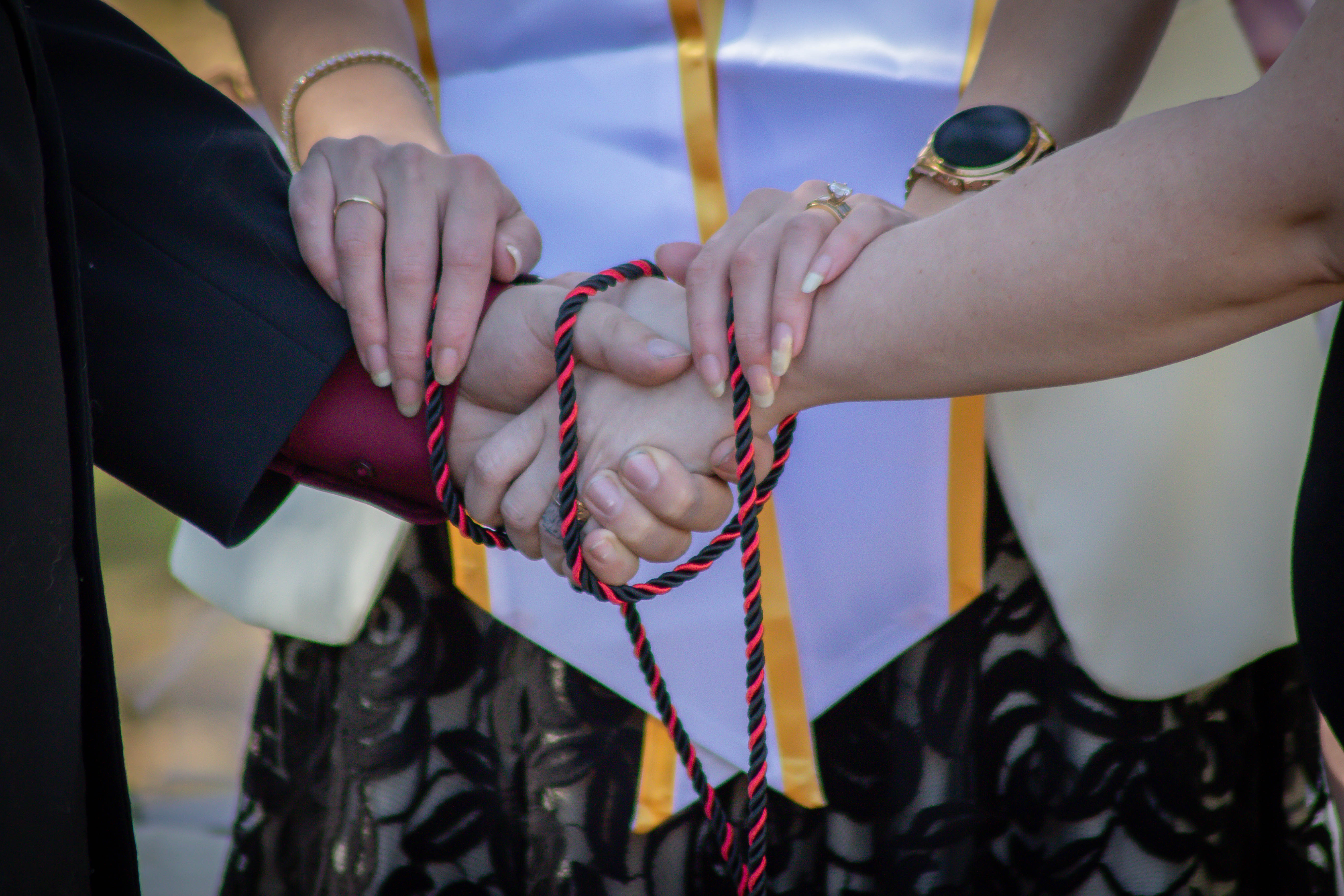 “Slater and Bree, on this day, these are the hands of your best friend, young and strong and full of love for you. These are the hands that will cherish you throughout the years. These are the hands that will comfort you in illness and trials, that will give you the strength to hold on during the storms and stresses of life. And, lastly, these are the hands that even when wrinkled and old will still be reaching for yours. May you always hold each other near and share the joy and happiness of life together. Let this bond be strong and loving!"