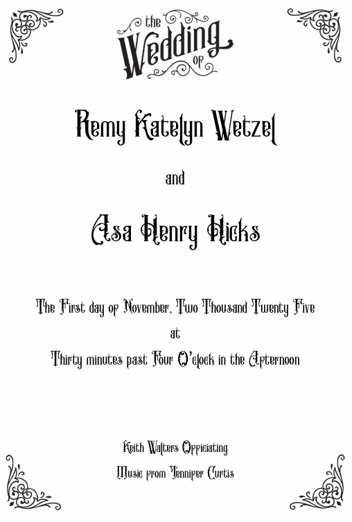Welcome, friends and family! We are here today to celebrate Asa and Remy as they begin a new chapter in their life together.