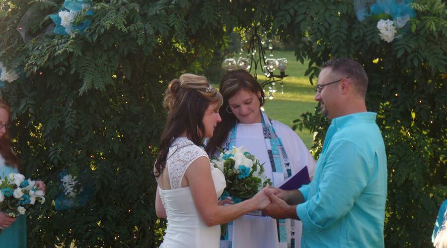 By the authority vested in me by American Marriage Ministries and the State of Kansas I now pronounce you wife and husband!
